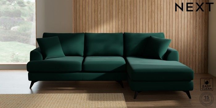 7.3.1 Buy Parker Medium Sofa Chaise - Right Hand Plush Velvet Easy Clean Bottle Green High Metal - Black from the Next UK online shop Click here to use our accessible website