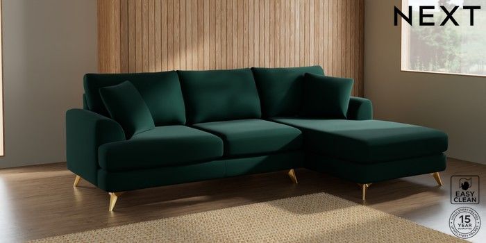 7.2.5 Buy Parker Medium Sofa Chaise - Right Hand Plush Velvet Easy Clean Bottle Green High Metal - Brass from the Next UK online shop Click here to use our accessible website
