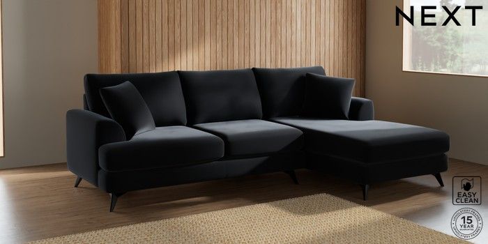 7.2.5 Buy Parker Medium Sofa Chaise - Right Hand Plush Velvet Easy Clean Charcoal Grey High Metal - Black from the Next UK online shop Click here to use our accessible website