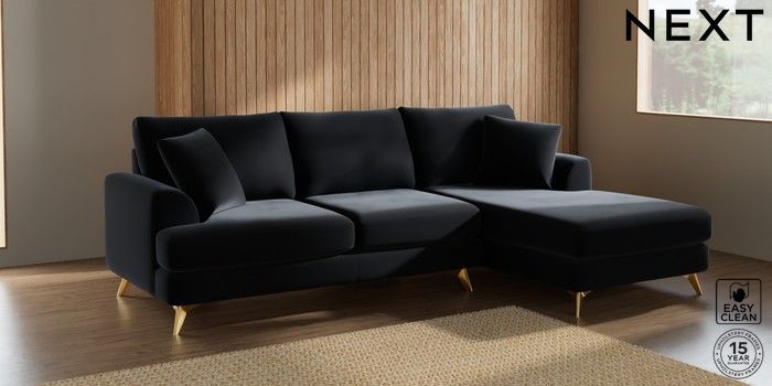 7.2.5 Buy Parker Medium Sofa Chaise - Right Hand Plush Velvet Easy Clean Charcoal Grey High Metal - Brass from the Next UK online shop Click here to use our accessible website