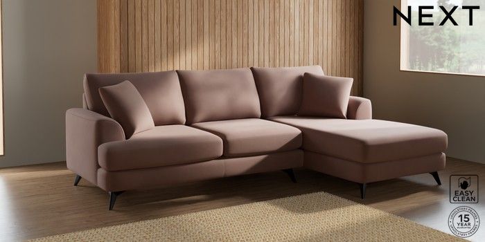 7.2.5 Buy Parker Medium Sofa Chaise - Right Hand Plush Velvet Easy Clean Mid Natural High Metal - Black from the Next UK online shop Click here to use our accessible website