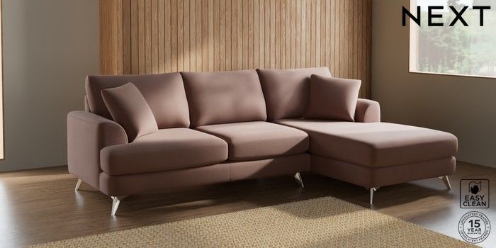7.2.5 Buy Parker Medium Sofa Chaise - Right Hand Plush Velvet Easy Clean Mid Natural High Metal - Chrome from the Next UK online shop Click here to use our accessible website