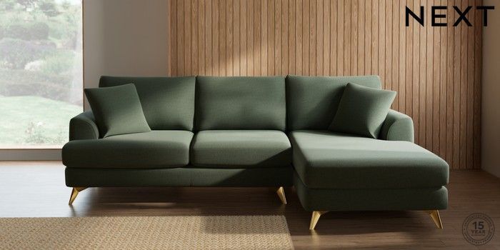7.3.1 Buy Parker Medium Sofa Chaise - Right Hand Relaxed Linen Look Dark Green High Metal - Brass from the Next UK online shop Click here to use our accessible website