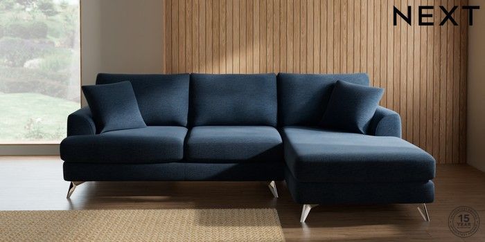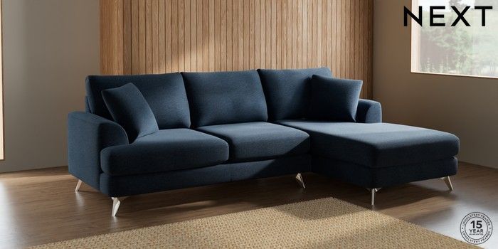 7.0.3 Buy Parker Medium Sofa Chaise - Right Hand Ripple Chenille Dark Blue High Metal - Chrome from the Next UK online shop Click here to use our accessible website