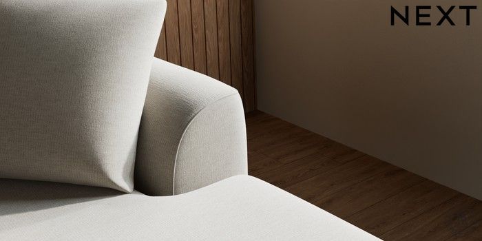 7.2.10 Buy Parker Medium Sofa Chaise - Right Hand Ripple Chenille Light Natural Low Retro Tapered - Mid from the Next UK online shop Click here to use our accessible website