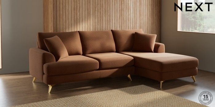 7.2.5 Buy Parker Medium Sofa Chaise - Right Hand Ripple Chenille Mid Rust Brown High Metal - Brass from the Next UK online shop Click here to use our accessible website