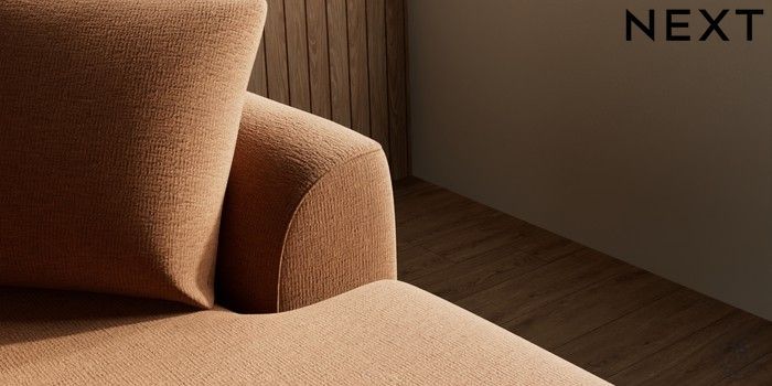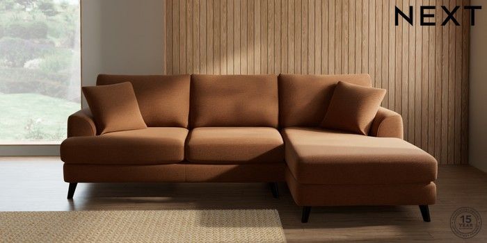 7.2.10 Buy Parker Medium Sofa Chaise - Right Hand Ripple Chenille Mid Rust Brown Low Retro Tapered - Dark from the Next UK online shop Click here to use our accessible website