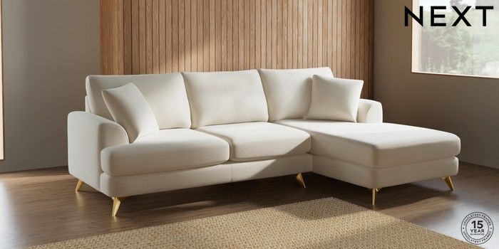 7.2.5 Buy Parker Medium Sofa Chaise - Right Hand Ripple Chenille Oyster High Metal - Brass from the Next UK online shop Click here to use our accessible website
