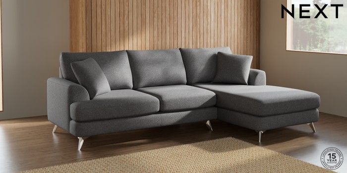 7.2.5 Buy Parker Medium Sofa Chaise - Right Hand Studio Chenille Mid Grey High Metal - Chrome from the Next UK online shop Click here to use our accessible website