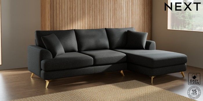 7.2.5 Buy Parker Medium Sofa Chaise - Right Hand Tweedy Blend Easy Clean Charcoal Grey High Metal - Brass from the Next UK online shop Click here to use our accessible website