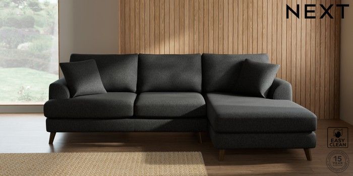 7.2.4 Buy Parker Medium Sofa Chaise - Right Hand Tweedy Blend Easy Clean Charcoal Grey Low Retro Tapered - Mid from the Next UK online shop Click here to use our accessible website