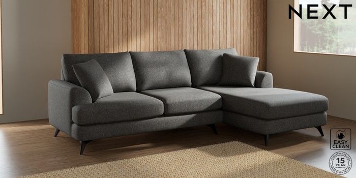 7.2.5 Buy Parker Medium Sofa Chaise - Right Hand Tweedy Blend Easy Clean Dark Grey High Metal - Black from the Next UK online shop Click here to use our accessible website