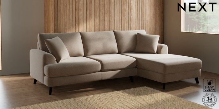 7.2.4 Buy Parker Medium Sofa Chaise - Right Hand Tweedy Blend Easy Clean Light Dove Natural Low Retro Tapered - Dark from the Next UK online shop Click here to use our accessible website