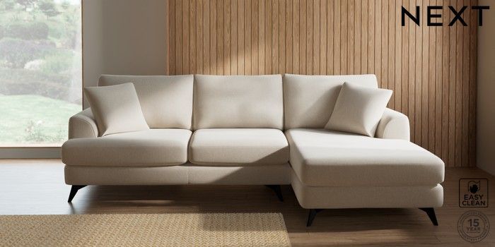 7.3.1 Buy Parker Medium Sofa Chaise - Right Hand Tweedy Blend Easy Clean Oyster High Metal - Black from the Next UK online shop Click here to use our accessible website