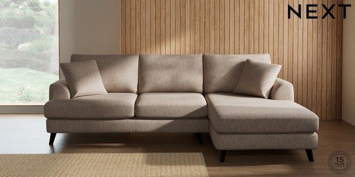 7.3.1 Buy Parker Medium Sofa Chaise - Right Hand Tweedy Chenille Mid Natural Low Retro Tapered - Dark from the Next UK online shop Click here to use our accessible website