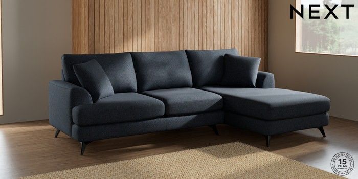 7.2.5 Buy Parker Medium Sofa Chaise - Right Hand Tweedy Chenille Navy Blue High Metal - Black from the Next UK online shop Click here to use our accessible website
