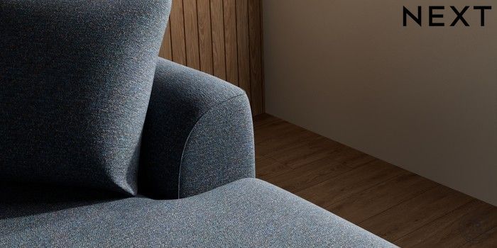 7.2.10 Buy Parker Medium Sofa Chaise - Right Hand Tweedy Chenille Navy Blue High Metal - Brass from the Next UK online shop Click here to use our accessible website
