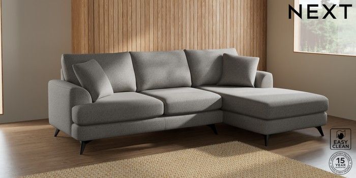 7.2.5 Buy Parker Medium Sofa Chaise - Right Hand Woven Chenille Easy Clean Light Grey High Metal - Black from the Next UK online shop Click here to use our accessible website