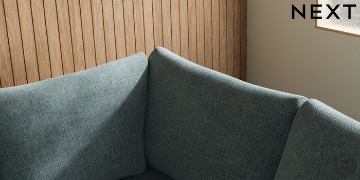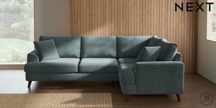 7.0.3 Buy Parker Medium Corner Sofa - Right Hand Chunky Chenille Light Teal Green Low Retro Tapered - Mid from the Next UK online shop Click here to use our accessible website