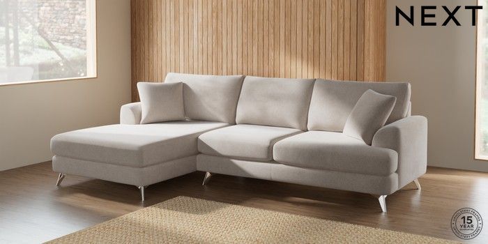 7.2.5 Buy Parker Large Sofa Chaise - Left Hand Chunky Chenille Oyster High Metal - Chrome from the Next UK online shop Click here to use our accessible website