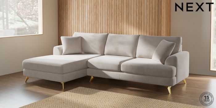 7.2.5 Buy Parker Large Sofa Chaise - Left Hand Chunky Chenille Oyster High Metal - Brass from the Next UK online shop Click here to use our accessible website