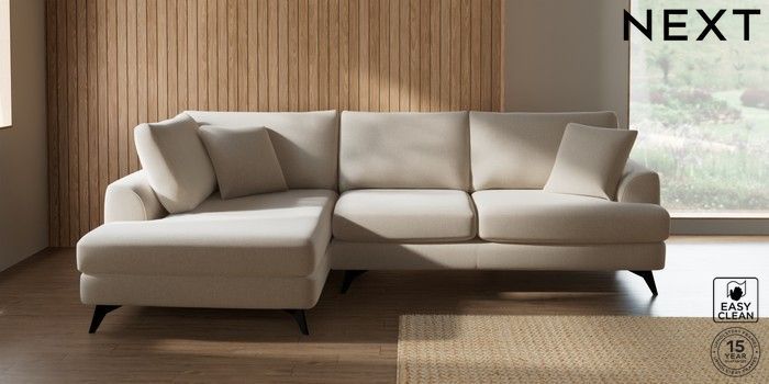 7.2.6 Buy Parker Medium Corner Chaise - Left Hand Tweedy Blend Easy Clean Oyster High Metal - Black from the Next UK online shop Click here to use our accessible website