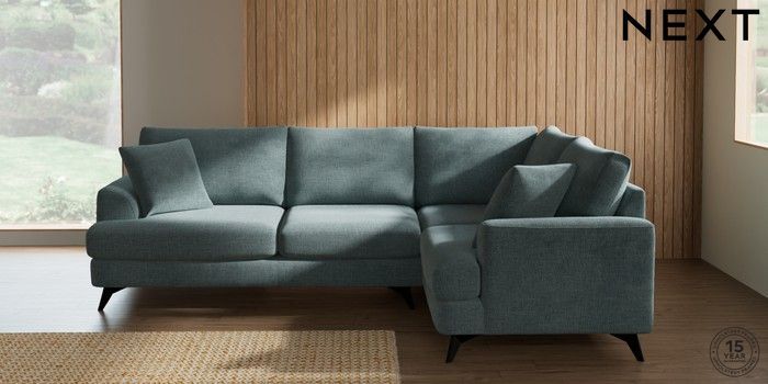 7.0.3 Buy Parker Medium Corner Sofa - Right Hand Chunky Chenille Light Teal Green High Metal - Black from the Next UK online shop Click here to use our accessible website
