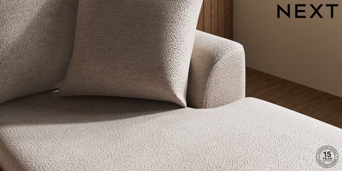 7.2.10 Buy Parker Small Sofa Chaise - Universal Boucle Chenille Light Natural Low Retro Tapered - Mid from the Next UK online shop Click here to use our accessible website