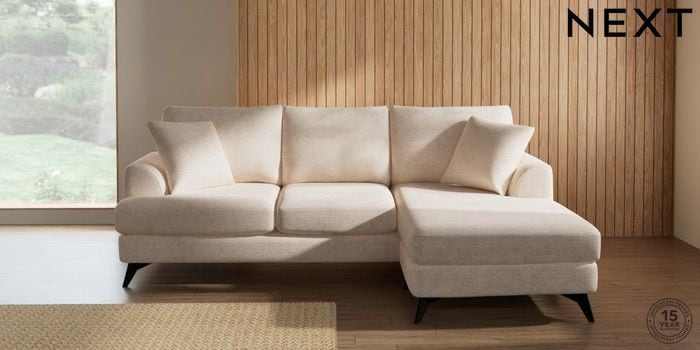 7.2.10 Buy Parker Small Sofa Chaise - Universal Boucle Chenille Oyster High Metal - Black from the Next UK online shop Click here to use our accessible website