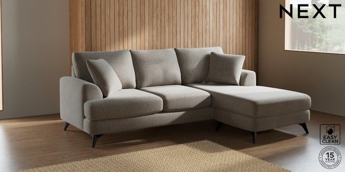 7.2.5 Buy Parker Small Sofa Chaise - Universal Chunky Boucle Easy Clean Dove High Metal - Black from the Next UK online shop Click here to use our accessible website