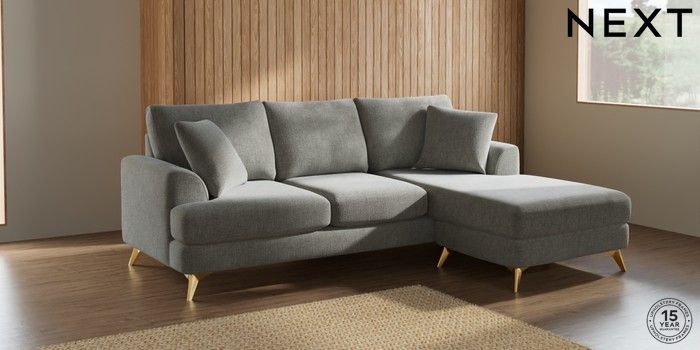 7.2.5 Buy Parker Small Sofa Chaise - Universal Chunky Chenille Light Grey High Metal - Brass from the Next UK online shop Click here to use our accessible website