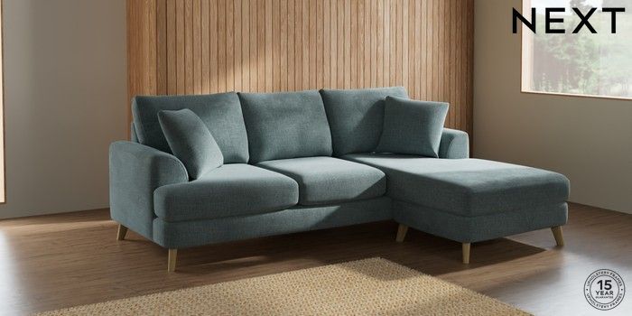 7.2.5 Buy Parker Small Sofa Chaise - Universal Chunky Chenille Light Teal Green Low Retro Tapered - Light from the Next UK online shop Click here to use our accessible website
