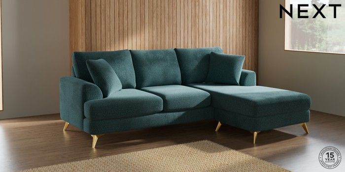 7.2.5 Buy Parker Small Sofa Chaise - Universal Chunky Chenille Mid Teal Green High Metal - Brass from the Next UK online shop Click here to use our accessible website