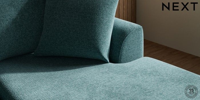 7.3.1 Buy Parker Small Sofa Chaise - Universal Chunky Chenille Mid Teal Green Low Retro Tapered - Dark from the Next UK online shop Click here to use our accessible website
