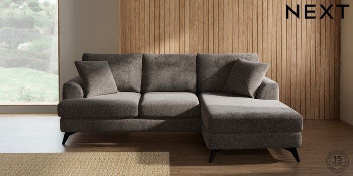 7.2.10 Buy Parker Small Sofa Chaise - Universal Chunky Chenille Mink Brown High Metal - Black from the Next UK online shop Click here to use our accessible website