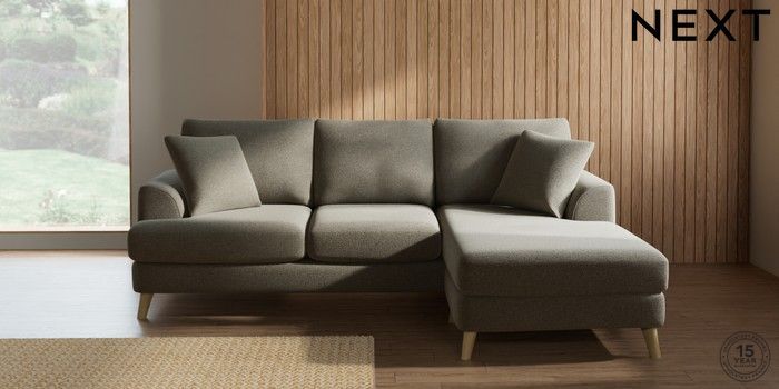 7.2.10 Buy Parker Small Sofa Chaise - Universal Chunky Marl Light Olive Green Low Retro Tapered - Light from the Next UK online shop Click here to use our accessible website