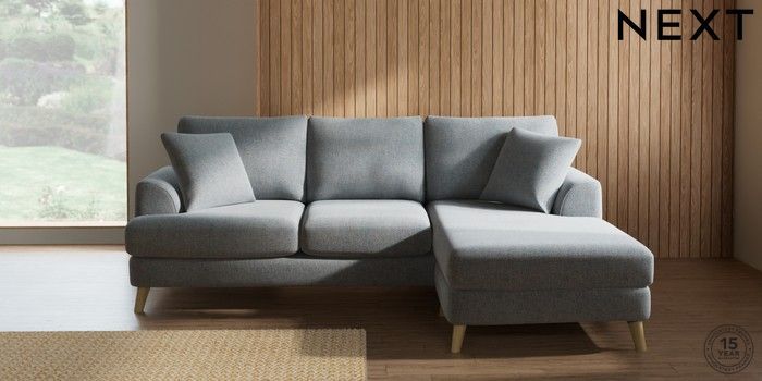 7.2.10 Buy Parker Small Sofa Chaise - Universal Chunky Marl Mid Grey Low Retro Tapered - Light from the Next UK online shop Click here to use our accessible website