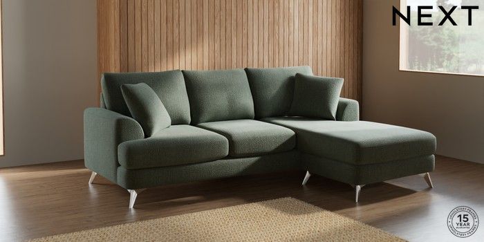 7.2.5 Buy Parker Small Sofa Chaise - Universal Chunky Texture Mid Forest Green High Metal - Chrome from the Next UK online shop Click here to use our accessible website