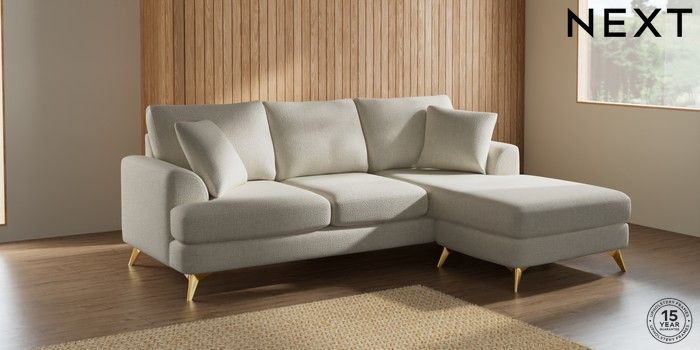 7.2.5 Buy Parker Small Sofa Chaise - Universal Chunky Texture Oyster High Metal - Brass from the Next UK online shop Click here to use our accessible website