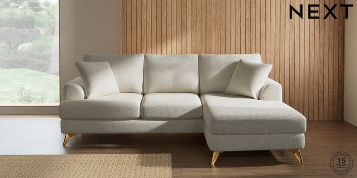 7.2.10 Buy Parker Small Sofa Chaise - Universal Chunky Texture Oyster High Metal - Brass from the Next UK online shop Click here to use our accessible website