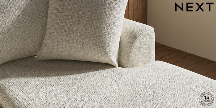 7.2.10 Buy Parker Small Sofa Chaise - Universal Chunky Texture Oyster High Metal - Chrome from the Next UK online shop Click here to use our accessible website