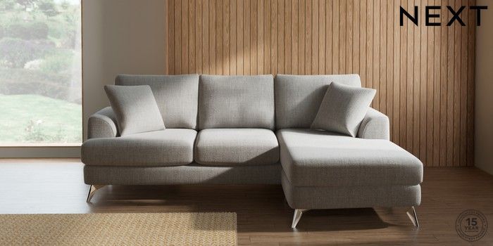 7.2.10 Buy Parker Small Sofa Chaise - Universal Chunky Weave Dove Grey High Metal - Chrome from the Next UK online shop Click here to use our accessible website