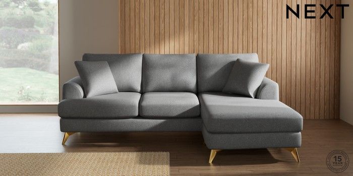 7.2.10 Buy Parker Small Sofa Chaise - Universal Chunky Weave Mid Grey High Metal - Brass from the Next UK online shop Click here to use our accessible website