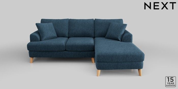 6.12.1 Buy Parker Small Sofa Chaise - Universal Cotswold Chenille Dark Blue Low Retro Tapered - Light from the Next UK online shop Click here to use our accessible website