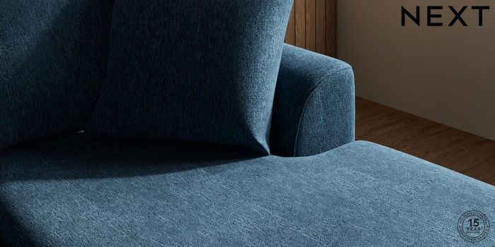7.2.10 Buy Parker Small Sofa Chaise - Universal Cotswold Chenille Dark Blue Low Retro Tapered - Light from the Next UK online shop Click here to use our accessible website
