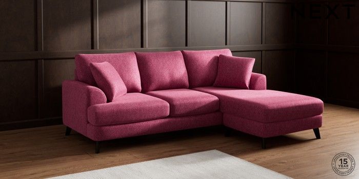 7.2.5 Buy Parker Small Sofa Chaise - Universal Cotswold Chenille Dark Raspberry Pink Low Retro Tapered - Dark from the Next UK online shop Click here to use our accessible website