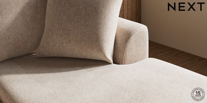 7.2.10 Buy Parker Small Sofa Chaise - Universal Cotswold Chenille Light Natural High Metal - Brass from the Next UK online shop Click here to use our accessible website