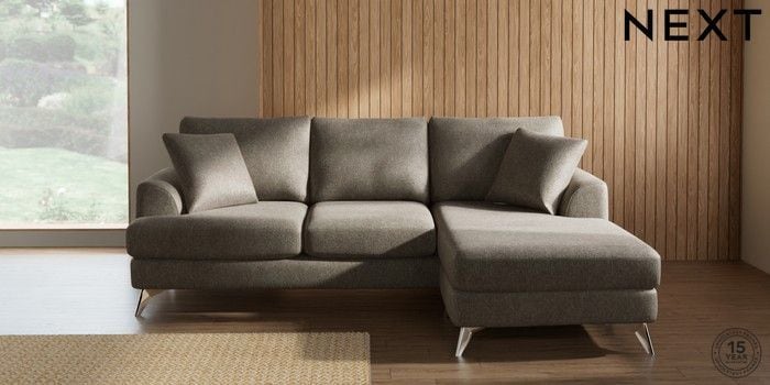 7.0.3 Buy Parker Small Sofa Chaise - Universal Cotswold Chenille Mid Mink Brown High Metal - Chrome from the Next UK online shop Click here to use our accessible website