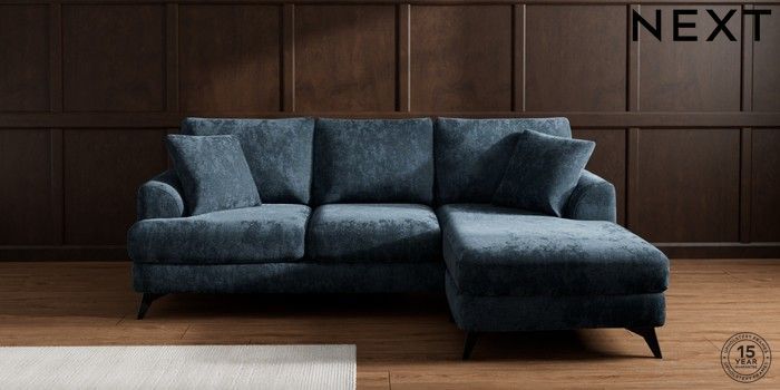 7.2.10 Buy Parker Small Sofa Chaise - Universal Distressed Velour Midnight Blue High Metal - Black from the Next UK online shop Click here to use our accessible website