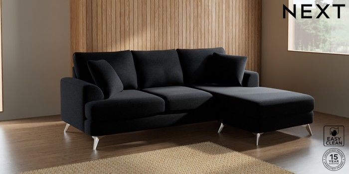 7.2.5 Buy Parker Small Sofa Chaise - Universal Fine Chenille Easy Clean Black High Metal - Chrome from the Next UK online shop Click here to use our accessible website